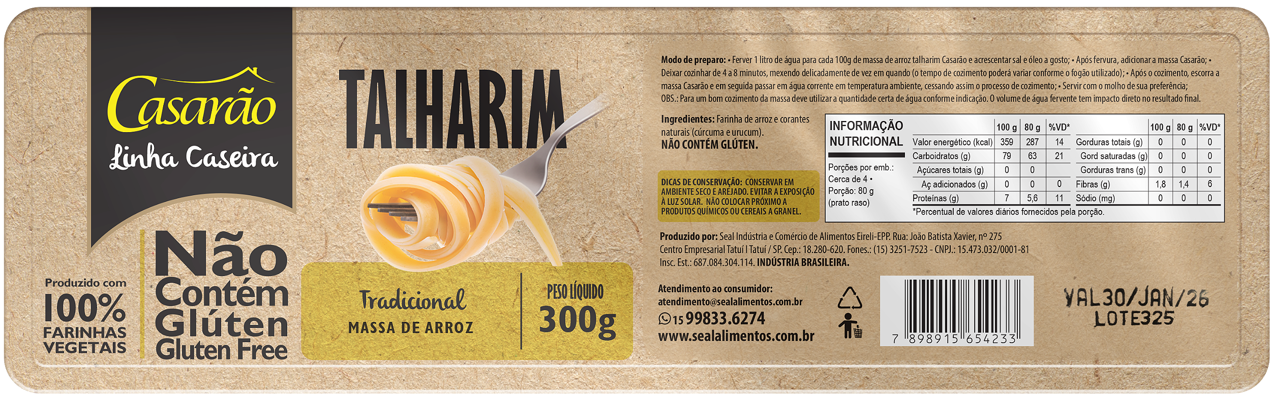 INGREDIENTES: Farinha de arroz, Cúrcuma e Urucum